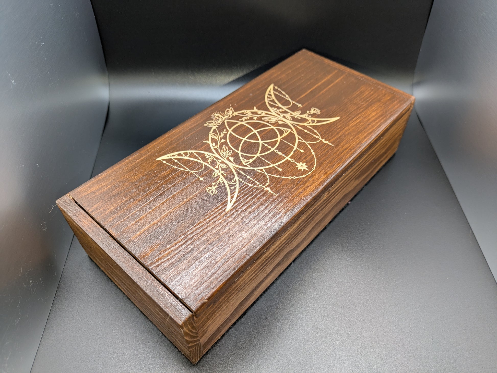 Mystical Triple Moon Hand painted and laser engraved. Perfect for holding incense, crystals, smudge kits and other mystical treasures